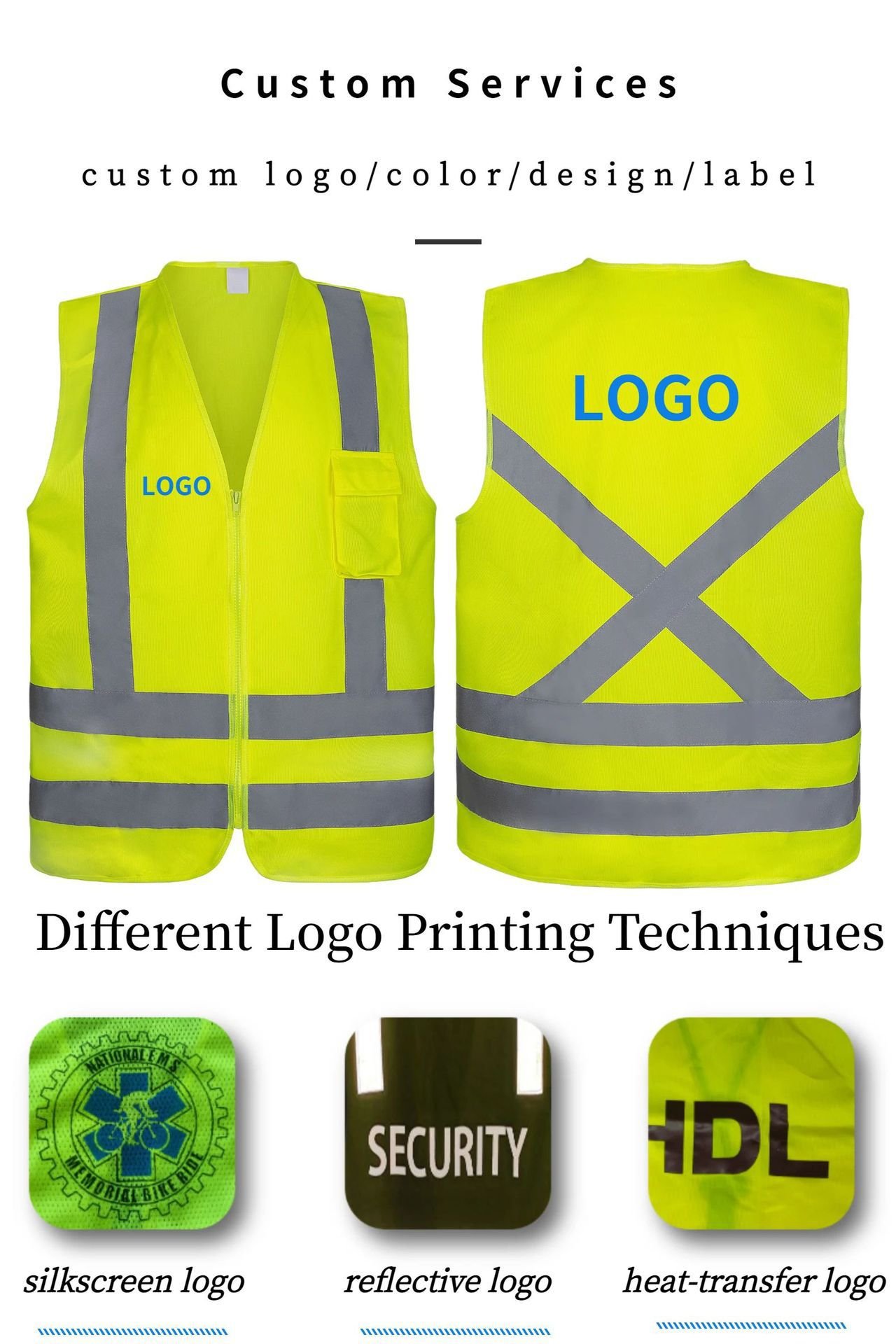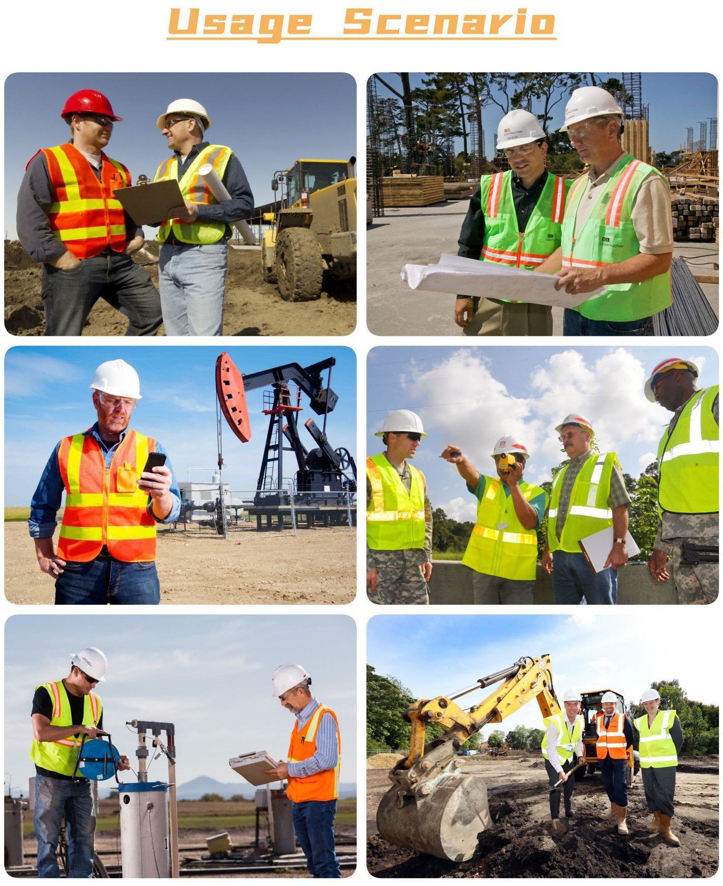 This vest is positioned for road, construction, industrial, sanitation, airport, dock, and other low-visibility work environments where a visible multi-pocket safety vest is required.