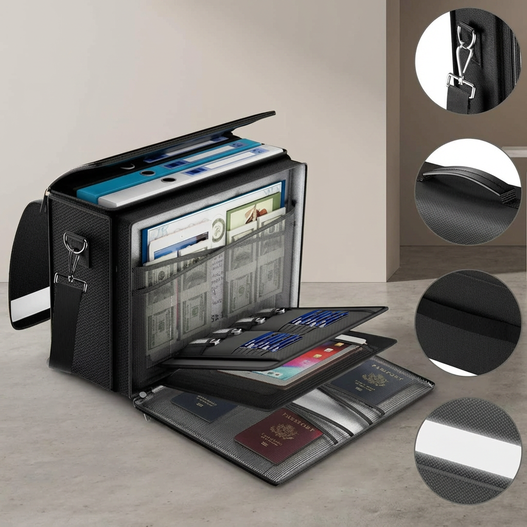 Positioned for high-end corporate security and professional records management, this 44cm (17-inch) industrial-grade document box features an advanced 8-layer thermal shield. Designed to withstand extreme temperatures while maintaining structural integrity, it integrates a multi-layered organizational system with a heavy-duty combination lock, making it the premier choice for transporting and storing high-value certificates and sensitive papers.